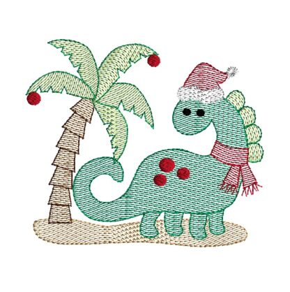 Christmas Dino Quick Stitch Machine Embroidery Design