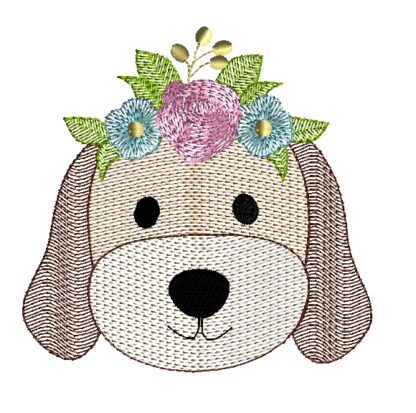 Dog with Floral Crown Quick Stitch Machine Embroidery Design