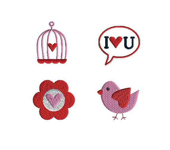 Mini Valentine Bird Machine Embroidery Design Set