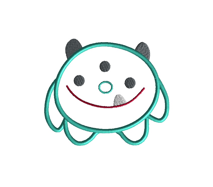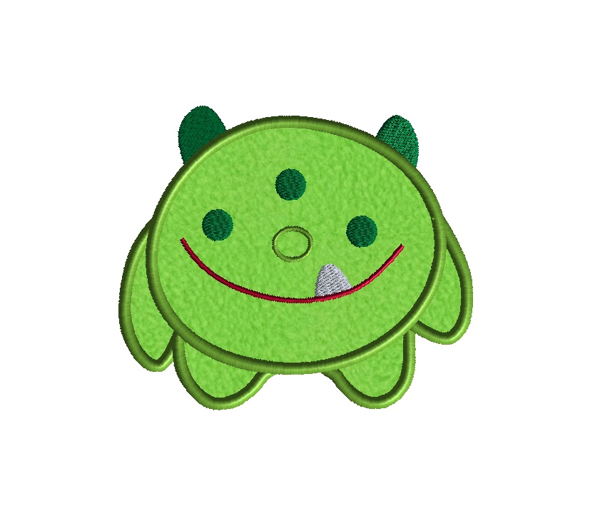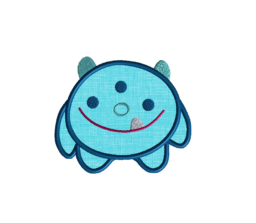 This is a cute monster machine applique embroidery design. It has 3 eyes a smiling mouth with 1 big tooth and 2 horns. You will need to have an embroidery machine to be able to stitch this design.