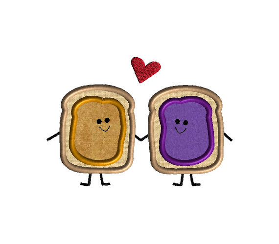 Peanut Butter and Jelly Love Applique Machine Embroidery Design