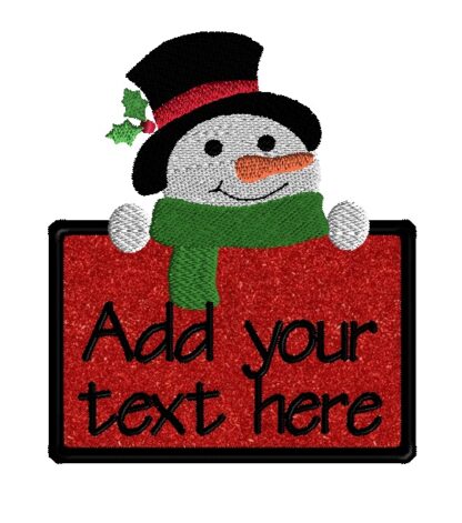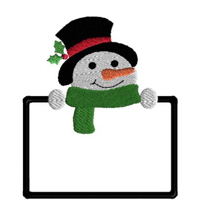 Peeking Snowman Sign Applique Machine Embroidery Design
