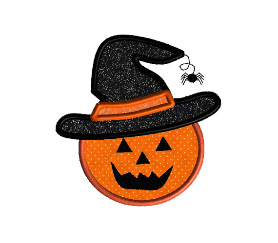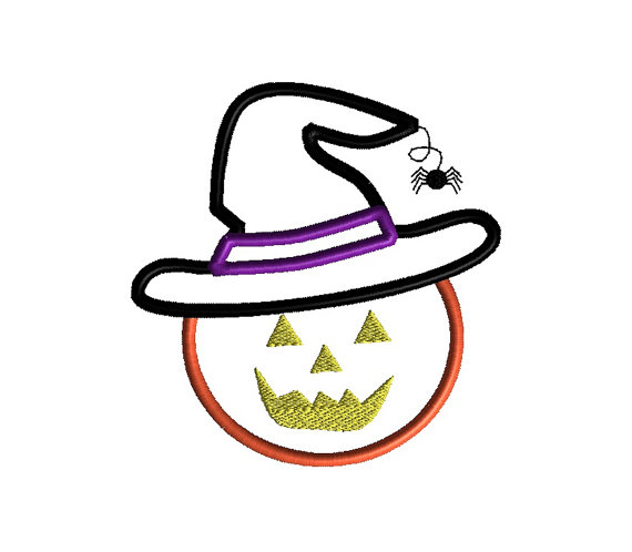 Pumpkin in Witch Hat Applique Machine Embroidery Design